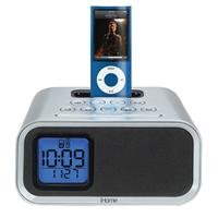 SLVR alarm clock speakr system for ipod plays and charges ipod
